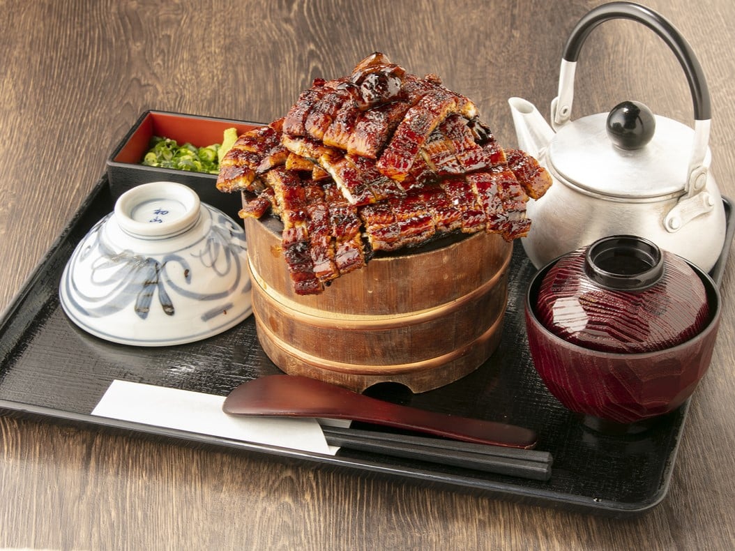 Hitsumabushi, a Nagoya specialty, is an eel dish that can be enjoyed three times in one bowl. Please enjoy it with your favorite amount of condiments and soup stock. Each eel is carefully grilled over a charcoal fire, making the surface crispy and fragrant and the flesh fluffy. The finely sliced eel spread evenly over the rice is a sight to behold!